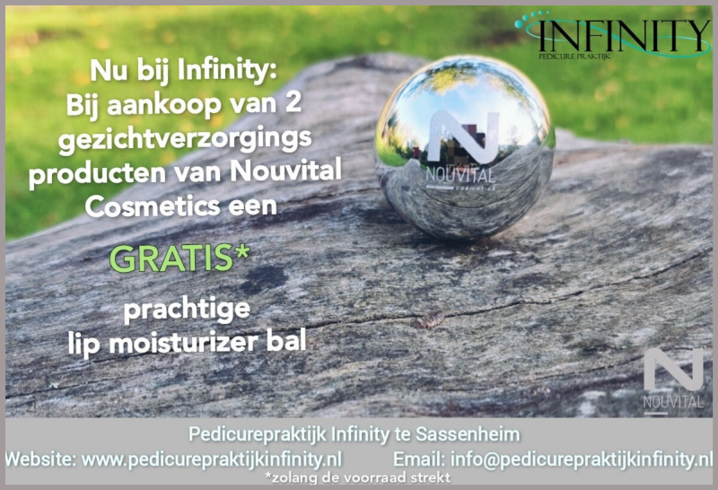 Pedicurepraktijk Infinity verkoopt nu ook hele handige reisetuis met daarin kleine varianten van uw favoriete gezichtsverzorging van Nouvital Cosmetics.